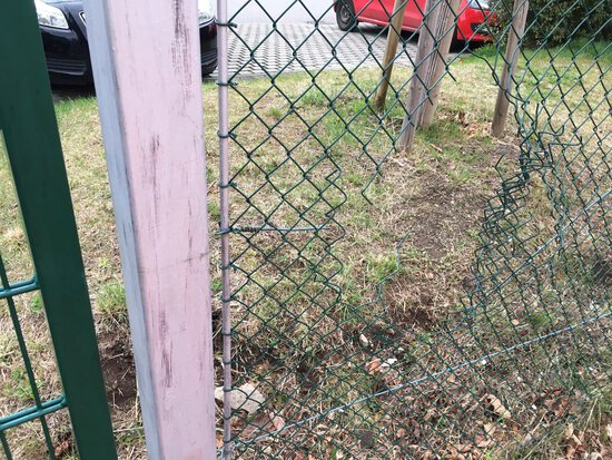 Irgendwelche "Vandalen" haben in den letzten Tage zwei ziemlich große Löcher in unserem Zaun beim Tor auf Platz 6 geschnitten!